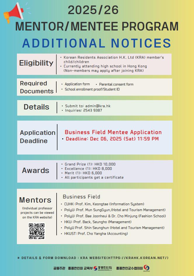 [홍콩한인회] 2025/26 차세대를 위한 멘토/멘티프로그램 추가 공지사항