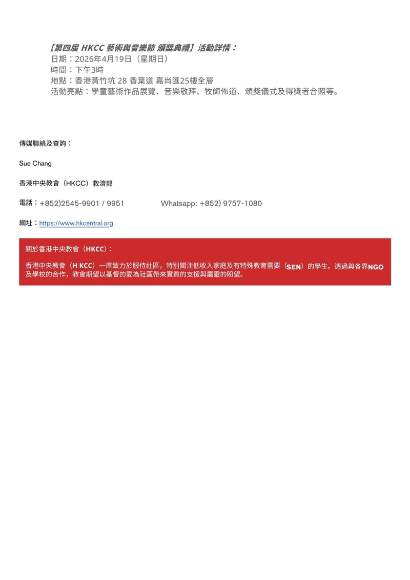 [홍콩중앙교회] 2026 ARTS & MUSIC FESTIVAL